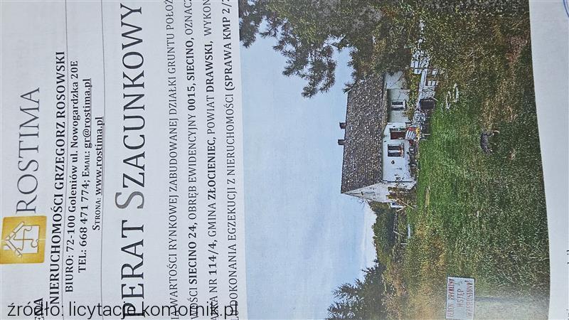 - nieruchomości położonej przy ul. ***, Siecino, 78-520 Złocieniec, dla której Sąd Rejonowy w Drawsku Pomorskim (adres: ul. Jasna 3, Drawsko Pomorskie, 78-500 Drawsko Pomorskie) prowadzi księgę wieczystą o numerze KO1D/***/1.