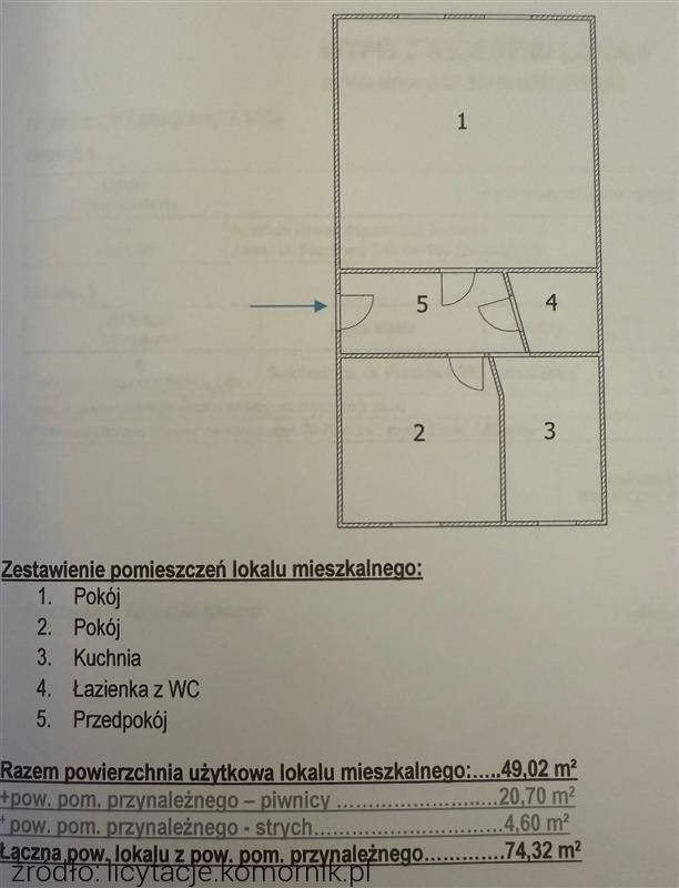 Cena wywoławcza:130 000 zł1 749 zł/m 274 m2 2 pokoje |