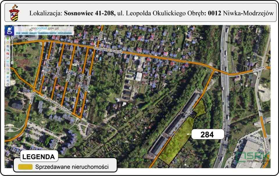 Nieruchomość gruntowa niezabudowana stanowiąca własność Skarbu Państwa będącaw użytkowaniu wieczystym Spółki Restrukturyzacji Kopalń S.A. z siedzibą w Bytomiu, położona w Sosnowcu, przy ul. Wojska Polskiego, obejmująca działki oznaczone numerami geodezyjnymi 2710/2, 2704/2, 2707/4, obręb 0012, o łącznej powierzchni 3 453 m2 (0,3453 ha). Dla nieruchomości urządzona jest księga wieczysta Nr KA1S/00045381/0 prowadzona przez Sąd Rejonowy w Sosnowcu, VI Wydział Ksiąg Wieczystych. Najbliższe otoczenie...