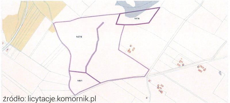 ...pierwsza licytacja elektroniczna nieruchomości: nieruchomości stanowiącej prawo własności nieruchomości gruntowej rolnej niezabudowanej, składającej się z działek o nr. ewiden. ***/*** i ***/*** sąsiadujących ze sobą, o łącznej powierzchni 0,9946 ha (9946 m2). Działka nr ***/*** ma powierzchnię 0,3306 ha, a działka nr ***/*** ma powierzchnię 0,6640 ha. Działki wg. zapisów w księdze wieczystej stanowią grunty orne. Nieruchomość ma kształt nieregularny, wielokątny. Nieruchomość stanowi grunty ...