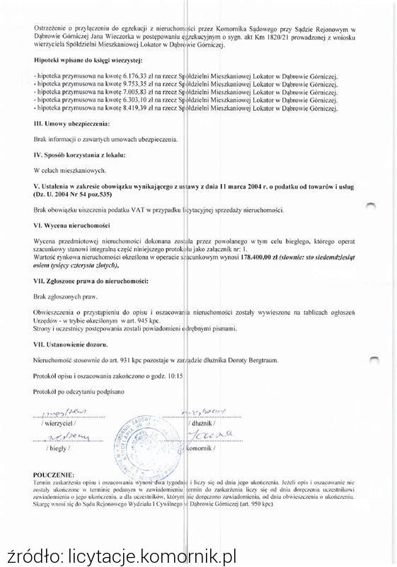 ...druga licytacja  w trybie elektronicznym następujących nieruchomości: | Cena wywoławcza: 150 666,67 zł3 056 zł/m249 m2 2 pokoje Termin: 2025-12-03 Organizator licytacji: KOMORNIK |